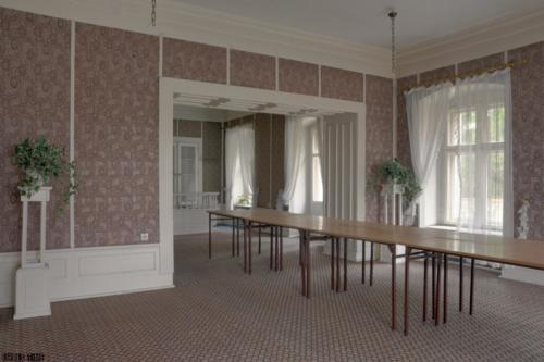 Pa艂ac wzniesiono w XVIII wieku. W 1910 roku zosta艂 on gruntownie przebudowany. W czasie wojny wie艣 zmieni艂a nazw臋, a pa艂ac przej臋li Niemcy. Po Wojnie obiekt przej膮艂 Skarb Pa艅stwa i doszcz臋tnie go rozparcelowa艂. Nast臋pnie w budynku utworzono mieszkania. W p贸藕niejszym czasie聽powsta艂a Rolnicza Sp贸艂dzielnia Produkcyjna, kt贸ra doprowadzi艂a budynek do ruiny. Pod koniec lat 50-tych utworzono Warsztaty Rehabilitacyjne Sp贸艂dzielni Inwalid贸w i wykonano pierwsze niezb臋dne remonty. W latach 80-tych budynek zosta艂 przej臋ty przez Urz膮d Gminy. W 1987 roku utworzono w pa艂acu o艣rodek szkoleniowo-wypoczynkowy. Posiada艂 on 90 pokoi w konfiguracji 1, 2, 3 oraz wieloosobowych. Pa艂ac by艂 wyposa偶ony w 2 sale wyk艂adowe z rzutnikami multimedialnymi, sto艂贸wk臋 na 100 miejsc i kawiarenk臋 w stylu wiede艅skiej secesji. Na terenie obiektu by艂a mo偶liwo艣膰 wypo偶yczenia sprz臋tu do p艂ywania i w臋dkowania, kt贸ry mo偶na by艂o wykorzysta膰 na pobliskiej pla偶y. Obiekt posiada艂 bilard, miejsce na grilla i ognisko, boisko do siatk贸wki oraz kort tenisowy. Po 2000 roku pojawi艂y si臋 pierwsze problemy o艣rodka, kt贸re w 2010 roku zaowocowa艂y jego zamkni臋cie. W tym samym roku obiekt przej臋艂o Starostwo Powiatowe. W 2018 roku budynek zosta艂 sprzedany holendrowi, jednak nie podj膮艂 on 偶adnych prac remontowych.聽